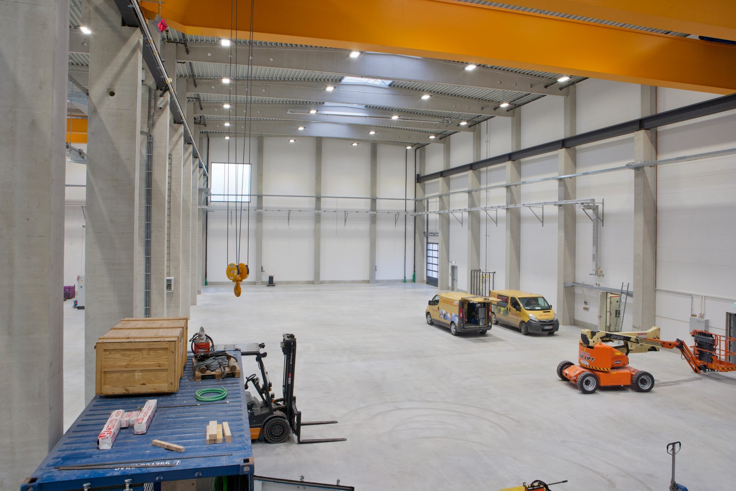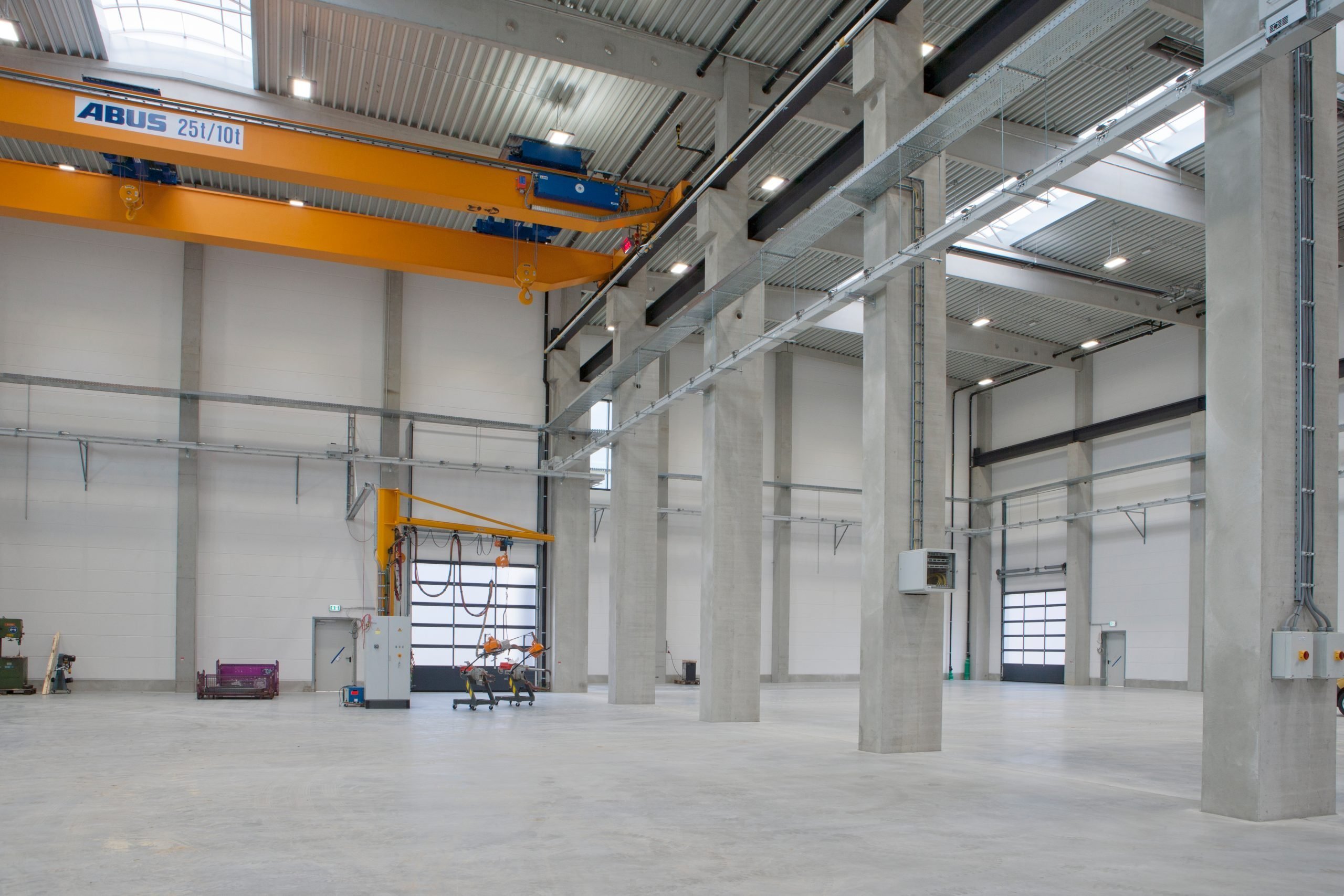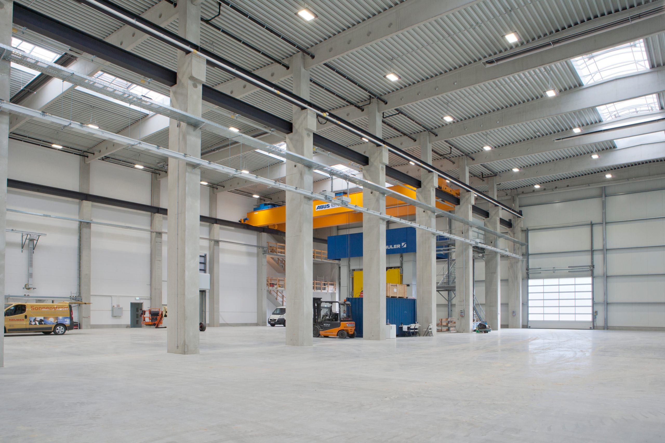 Im ersten Bauabschnitt konnte 2014 eine 2.760 m² große Produktions- und Lagerhalle inklusive angrenzendem, 3-geschossigem Verwaltungsbau mit einer Geschossfläche von insgesamt 1.140 m² realisiert werden.