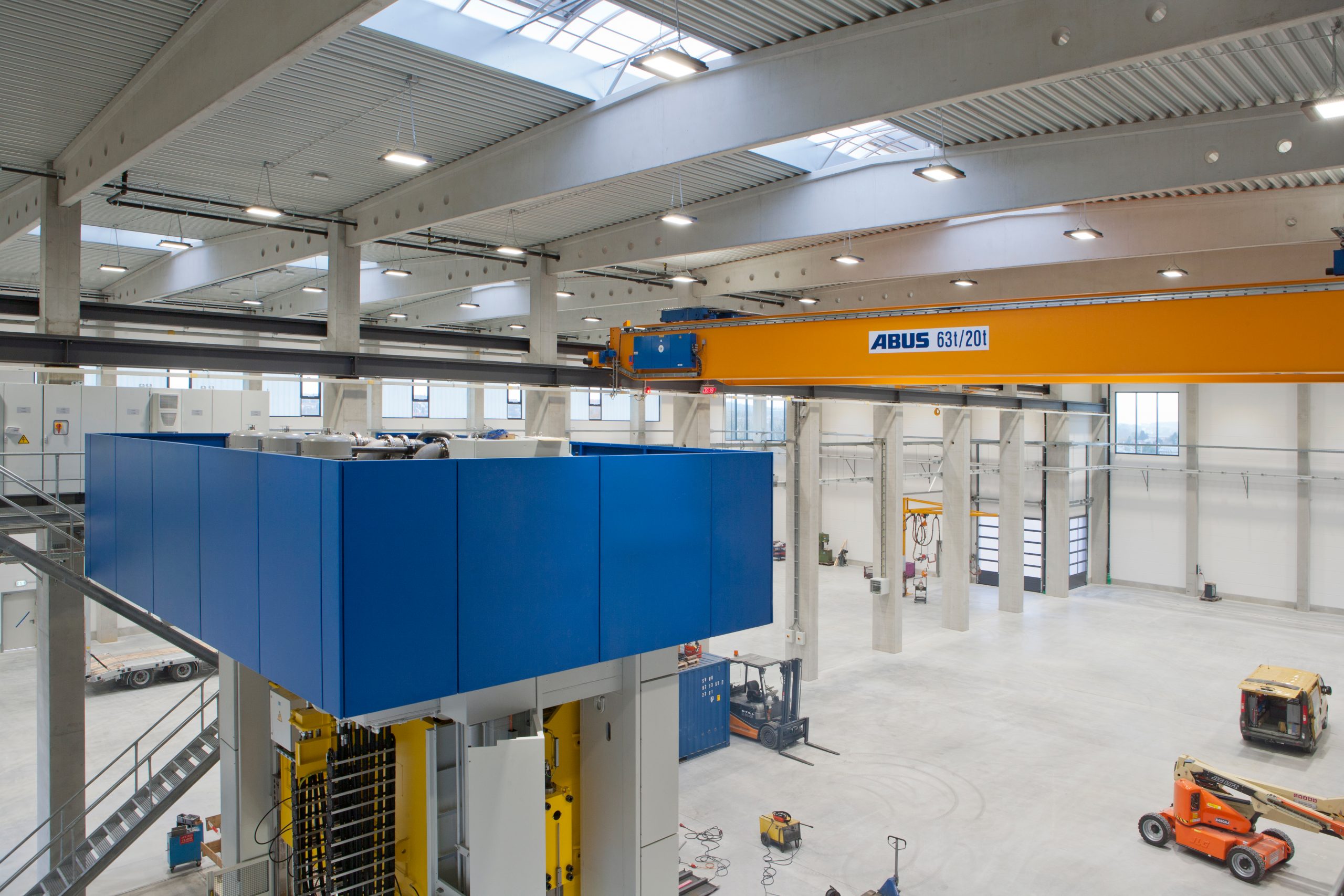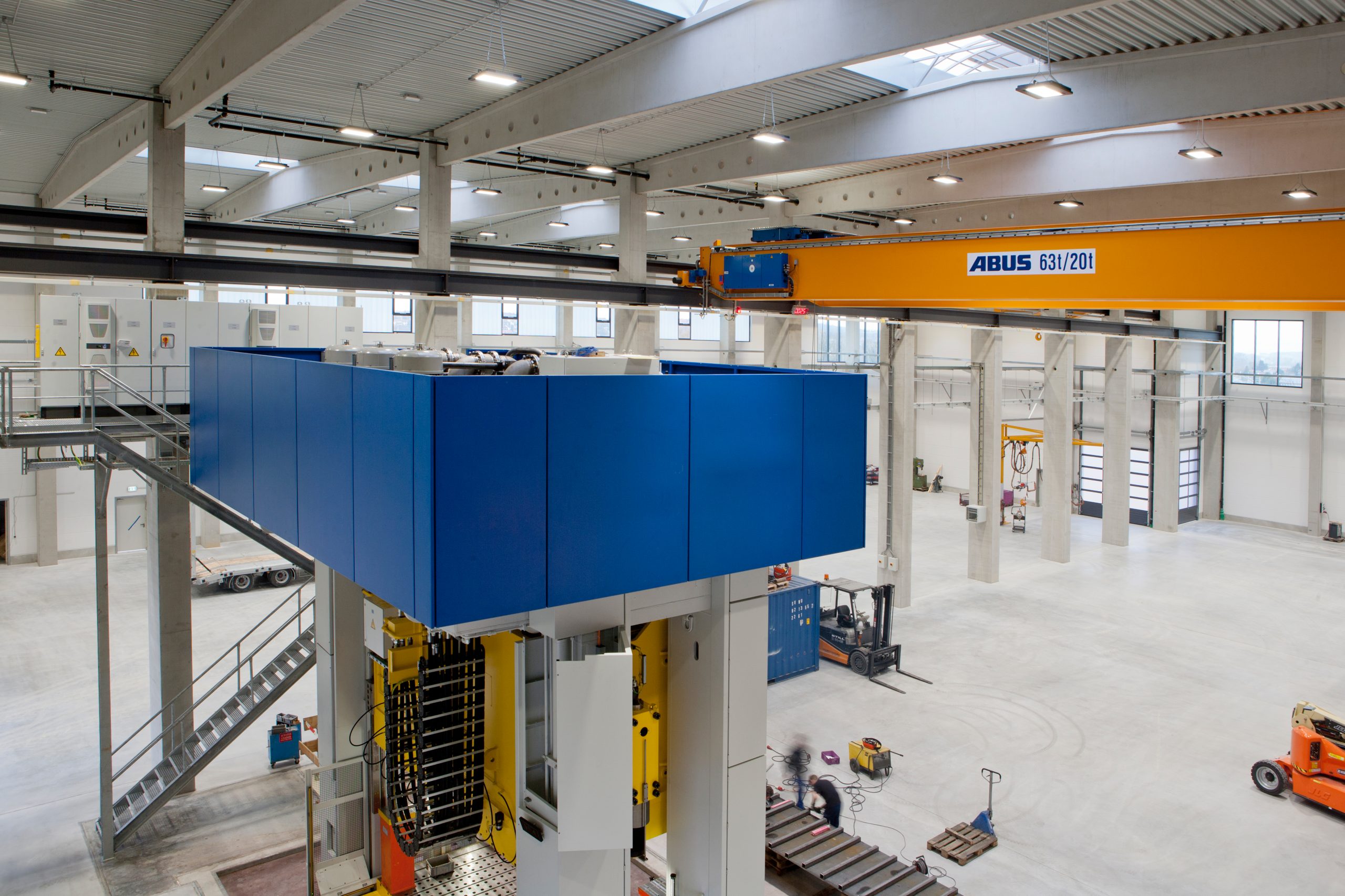 Das Kernstück der neuen, zweischiffigen Produktionshalle ist eine Tryout-Ziehpresse der Fa. Schuler mit einer Presskraft von 2.500 t zur Prototyp-Entwicklung von Presswerkzeugen und Blechteilen im Karosseriebau.