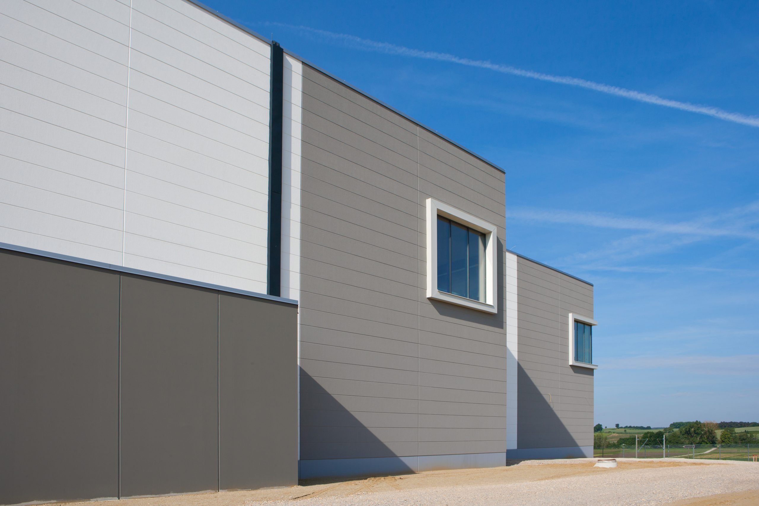 Der Hallenbaukörper verfügt über ein spezielles Akustikdach und Fassaden aus hochwertigem Porenbeton. Damit konnte auch bei Einsatz aller Maschinen, wie Pressen, Fräsmaschinen, Lasern, Schweißautomaten etc. ein erträglicher Innenschallpegel erzielt werden.